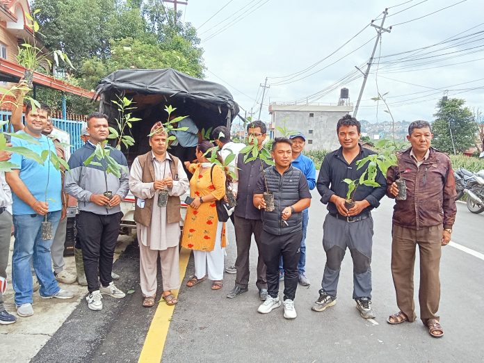 ´चाँगुनारायण सिटी एभाेकाडाेकाे सिटी अभियान` अन्तर्गत बिरुवा वितरण गरिएको अभियानका संयोजक नरेश खड्काले जानकारी दिए ।