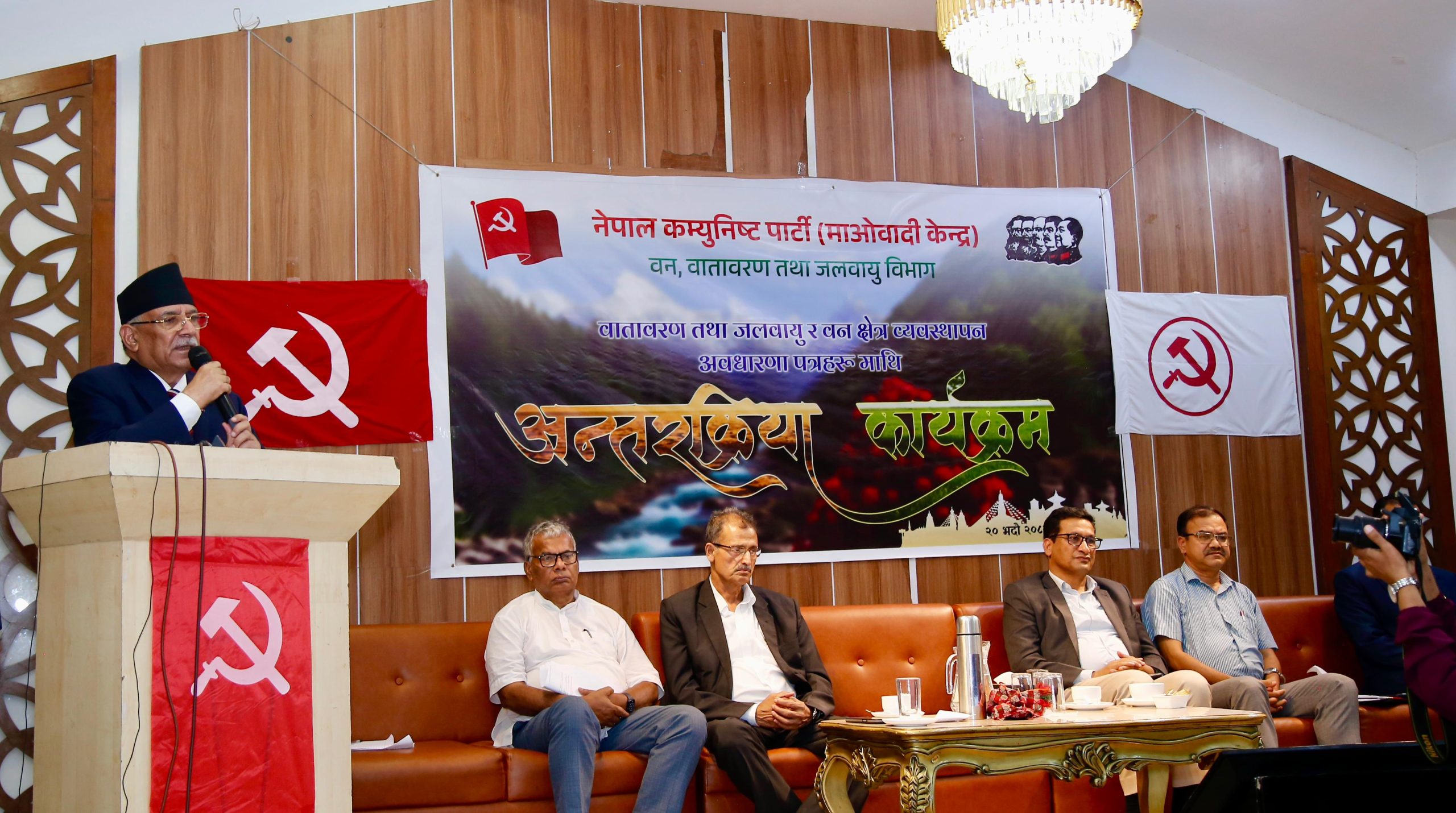 माओवादी केन्द्र वन, वातावरण तथा जलवायु विभागले आयोजना गरेको ‘वन, वातावरण तथा जलवायु र व्यवस्थापन अवधारणापत्रमाथिको अन्तक्रिया’ कार्यक्रममा अध्यक्ष प्रचण्डले सम्बोधन गर्दै जलवायु परिवर्तनको असरलाई पूँजीवादी विकास मोडलको असफलताको परिणामको रूपमा चित्रित गर्नुभयो।अध्यक्ष प्रचण्डले भन्नुभयो, “आजको विश्वमा जलवायु परिवर्तनका कारण मानव जातिको अस्तित्व नै संकटमा परेको छ। यसको समाधान यदि सहि ढंगले गर्न सकिएन भने यो संकट झन गहिरो हुँदै जानेछ।”